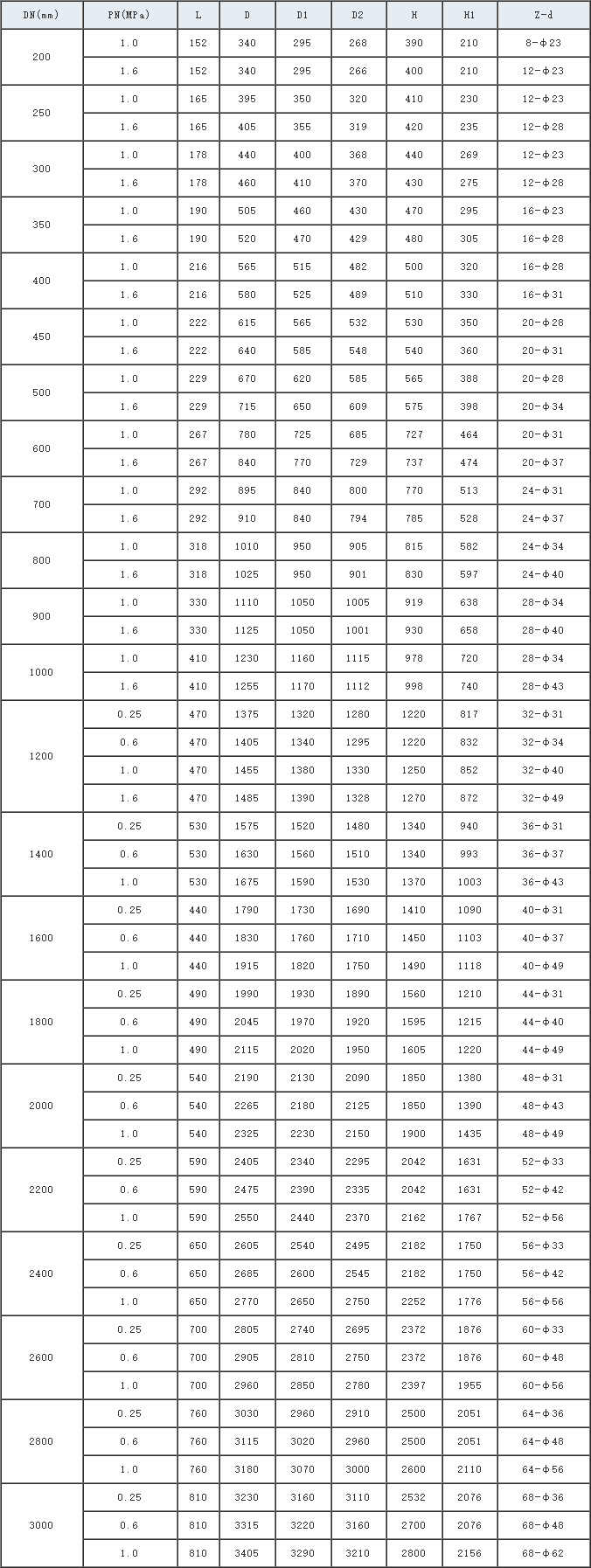 公称通径: DN200 -3000mm